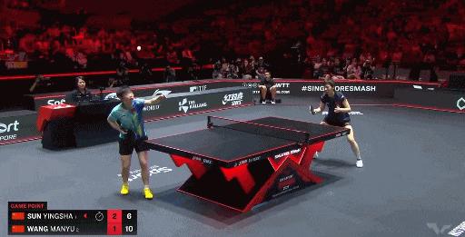 比賽一開始,孫穎莎連下兩局取得2-0領先。隨後王曼昱11比7、11比6追回兩局,將大比分追至2-2。之後孫穎莎連贏兩局,拿下比賽勝利。