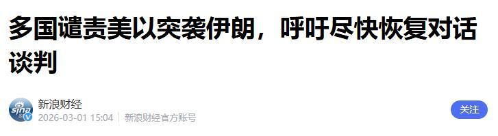 多國譴責美以突襲伊朗,呼籲儘快恢復對話談判.新浪財經.2026-03-01 15:04.