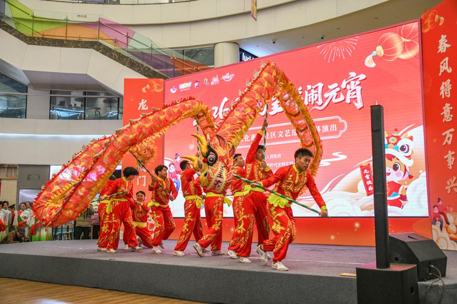 元宵節承載着祈福、驅邪、迎春的文化內涵。3月2日下午,“2026年龍馬呈祥鬧元宵暨三林鎮文化惠民文藝巡演開幕演出”活動在浦東新區三林鎮億豐時代廣場舉行。喜慶的民樂江南絲竹演奏《揚鞭催馬運糧忙》拉開了演出活動的序幕。活動融文藝演出、非遺市集、民俗互動於一體,通過20多項傳統民俗、非遺展示及互動項目,爲市民奉上沉浸式江南元宵節民俗體驗。