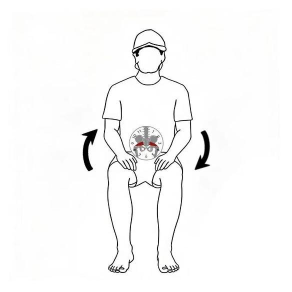 坐穩,想象你的骨盆是一個錶盤。緩慢地讓骨盆向前傾斜(指向12點方向),再向後傾斜(指向6點方向)。然後向左(9點方向)和向右(3點方向)輕輕晃動。動作幅度要小,彷彿在座椅上“研磨”一般。這能有效緩解下腰部壓力。