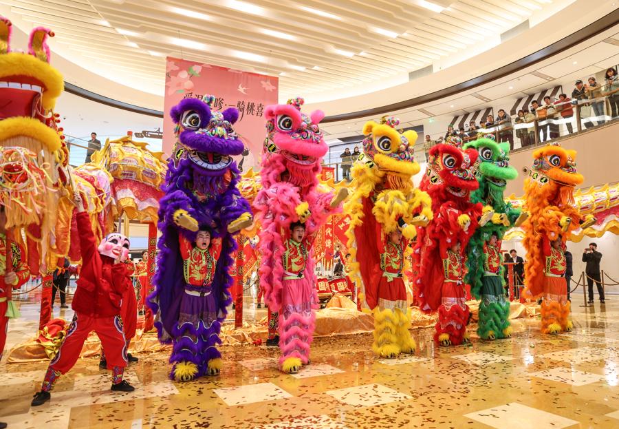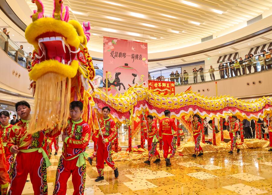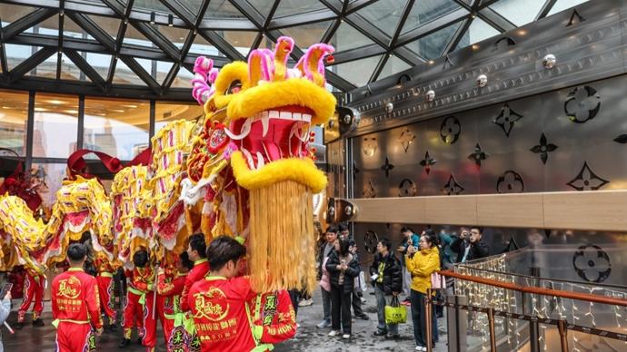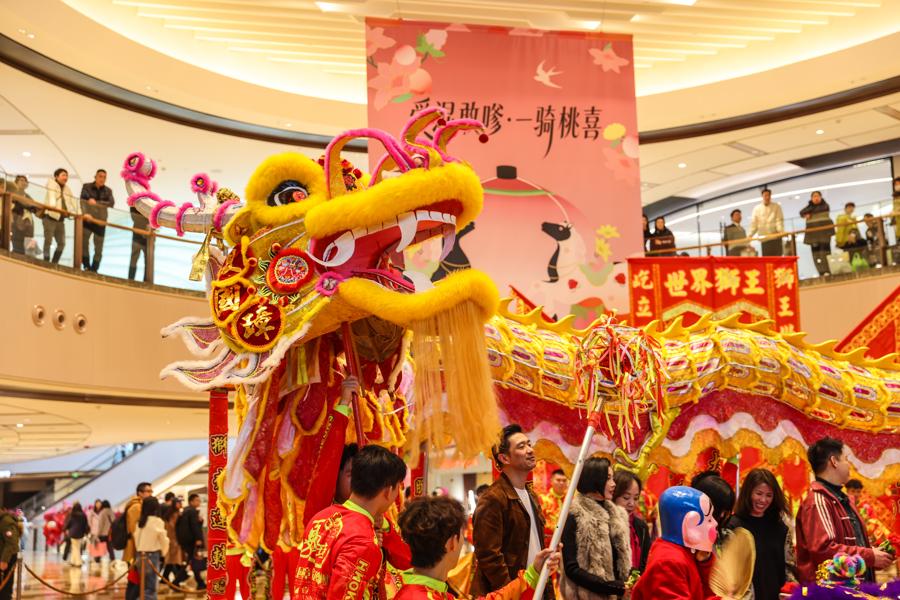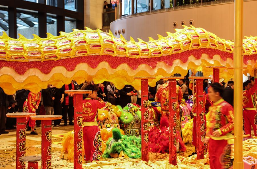 圖爲興業太古匯以一場氣勢磅礴的“龍騰獅躍,萬象更新”舞龍舞獅活動,點燃節日的熱鬧氛圍,爲滬上新歲注入歡樂與祥瑞。