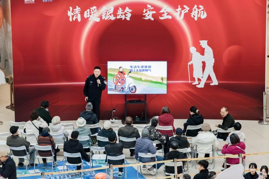 現場的另一邊,市民們正聽民警講解專門針對老年人的騙局套路。這一幕,也正式拉開了閔行公安3月“銀齡守護”專項宣傳活動的序幕。