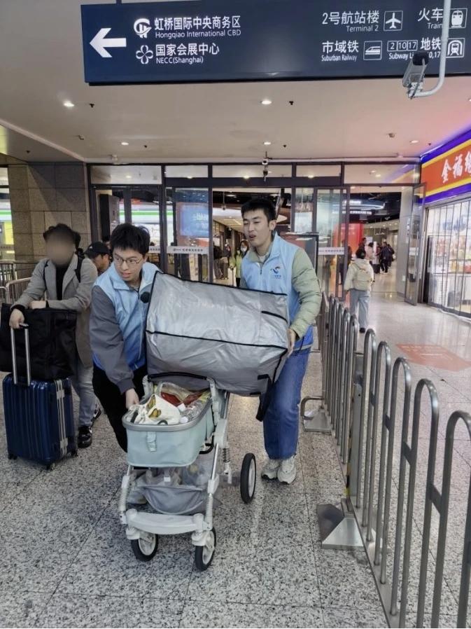 在虹橋交通樞紐,志願者宇偉傑在出租車候客區遇到兩位來自土耳其的遊客。兩人焦急地比畫着,原來是因無法使用打車App而手足無措。宇偉傑先是幫忙打開熱點連接網絡,發現對方因無國內手機卡無法線上支付後,立即帶領他們前往出租車乘車點,協助乘客上車後,還貼心地與司機說明了目的地。臨發車前,土耳其遊客豎起大拇指,用略顯生硬的中文說:“謝謝,上海!”