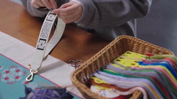 “是寶山區文旅局牽線,纔有了這次邂逅。”鄭曉蓉告訴記者,這是羅涇十字挑花技藝首次試水商業聯名,擺在面前的第一道題是合作什麼單品。“起初我們討論了四五種方案,從工藝、時間成本等多個維度考慮,在雙方多輪頭腦風暴和反覆溝通下,最終敲定了從包袋配飾入手,首批製作250件包掛、60條肩帶。”