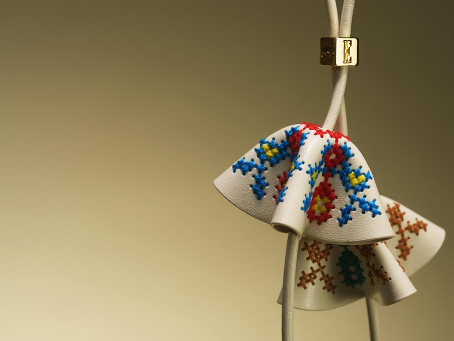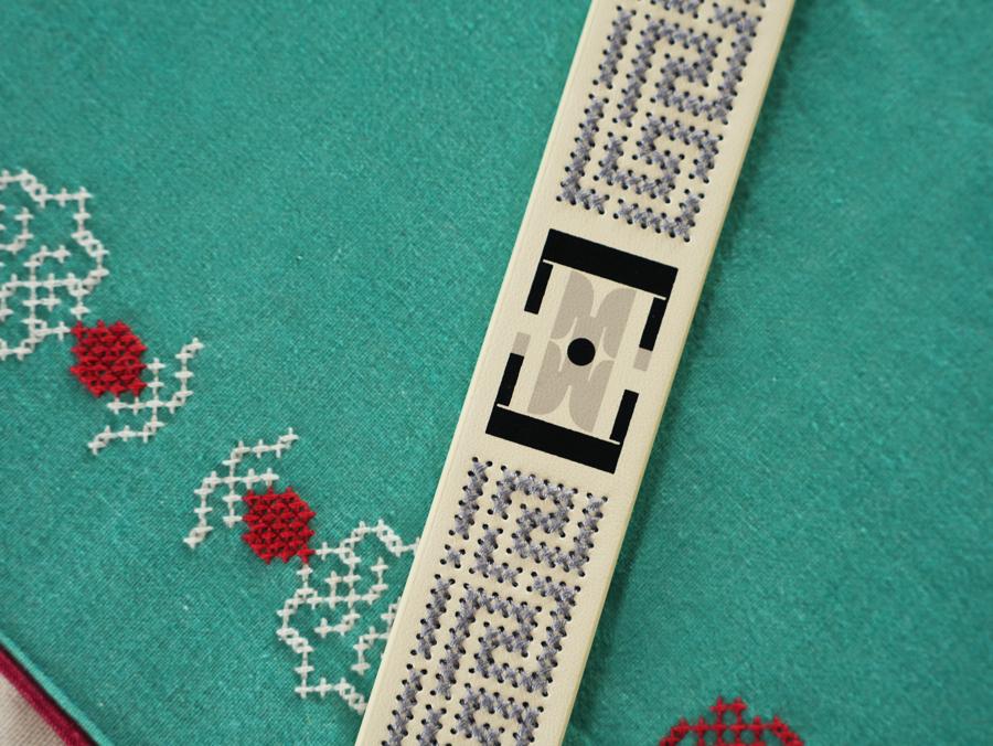 與品牌合作,不僅要埋頭鑽研技藝,還得了解市場接受度。“ELLE包袋配飾的主要受衆是年輕女性,我們要摸清她們會願意爲什麼樣的故事買單。”鄭曉蓉表示,在多番比對後,包掛選用了萱草紋樣和鈴蘭花形,撞色設計剛柔並濟,將春日的祝福藏在細膩的手工裏。萱草被稱作“忘憂草”,承載着對安康順遂的祈願;鈴蘭則以其清逸的姿態,寓意幸福歸來,羅涇十字挑花技藝以針線爲筆,將紋樣一針一針挑入,萱草舒展,鈴蘭低垂,行走時輕輕搖曳,彷彿讓憂思隨風散去。融入傳統回紋的肩帶,則悄悄藏進“E”字品牌符號,既藏着福壽綿長的東方寓意,又透着國際時尚的極簡大氣。