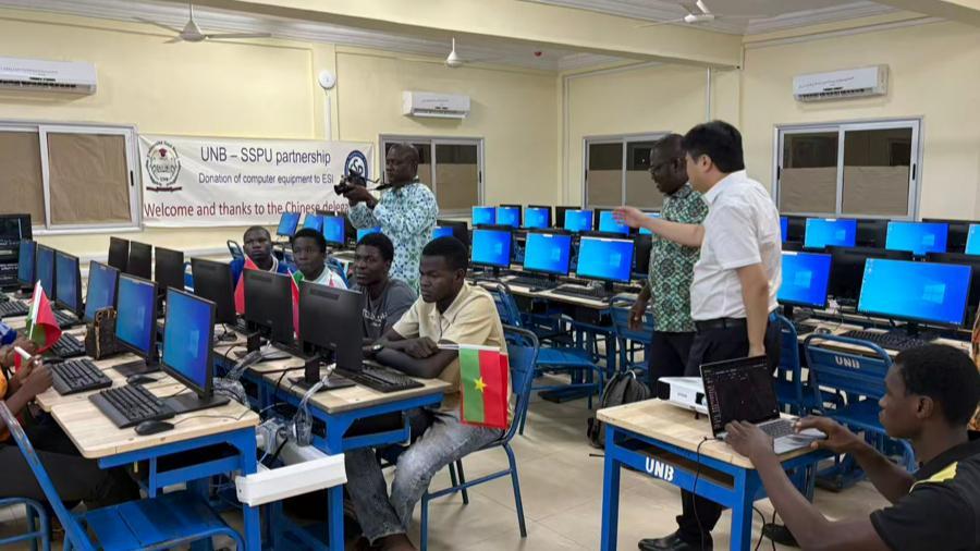 從上海到西非內陸跨越15000公里,在布基納法索的納茲博尼大學,一間由上海第二工業大學援建的首個高水平信息與通信技術實驗室,60臺高配置計算機,已累計惠及4萬餘名學生;三年來,近60名布方師生來華接受系統培訓。這不僅是硬件資源的支援,更是從“授人以魚”到“授人以漁”。