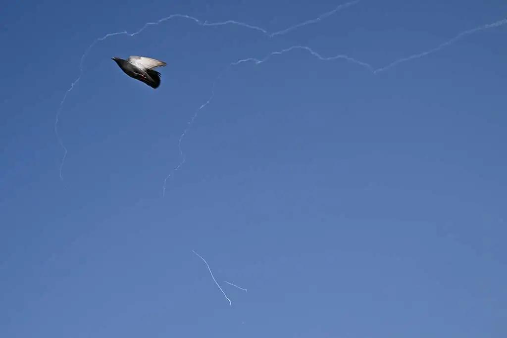 3月2日,迪拜天空中的攔截導彈的尾跡