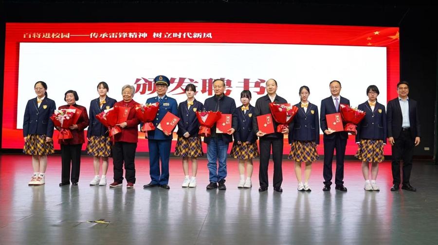 活動中,“百將愛國主義大講堂”揭牌,標誌着這一新的愛國主義教育平臺正式落戶金山中學,未來將爲學子們帶來更多高質量的紅色宣講。儀式後,蔣乾麟將軍爲在場的500名師生帶來了一場主題爲《雷鋒精神與成才規律》的紅色宣講,結合自身豐富的人生閱歷和深刻的理論思考,深入淺出地闡釋了雷鋒精神的核心內涵及其與當代青少年成長成才之間的內在聯繫。他勉勵廣大學子要學習雷鋒同志那樣的奉獻精神、敬業精神和創新精神,將個人理想融入國家發展大局,努力成爲擔當民族復興大任的時代新人。