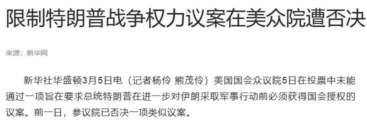 更關鍵的是,3月6號,美國國會否決了限制特朗普對伊動武的決議,等於給特朗普開了綠燈,允許他打長期戰。
