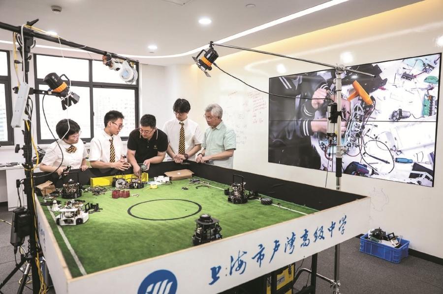 隨着“智能經濟”到來,培養AI能力和AI素養越發重要。圖爲上海市盧灣高級中學的人工智能實驗區吸引了許多對科創有着濃厚興趣的學生。 文匯報記者 袁婧攝