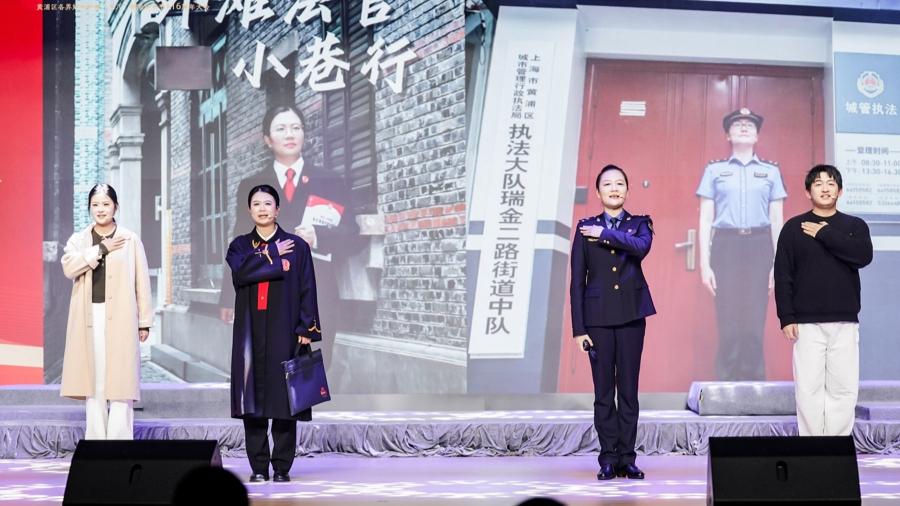 循着創新的腳步,“智・守護之責”篇章接棒登場。情景抒懷《柔肩擔重任·初心映民心》節目直擊人心,區法院立案庭副庭長屈麗娜和瑞金二路街道綜合行政執法隊隊長陸嫣以親身經歷爲藍本,講述她們在崗位上於規則中堅守溫度、於使命中勇毅前行的故事,讓觀衆真切看見女性在守護城市公平正義,那份兼具智慧與擔當的別樣力量。影舞敘事《來自遠方的信》則用舞蹈演繹從黃浦到果洛跨越山海的“西部女性關愛計劃”。