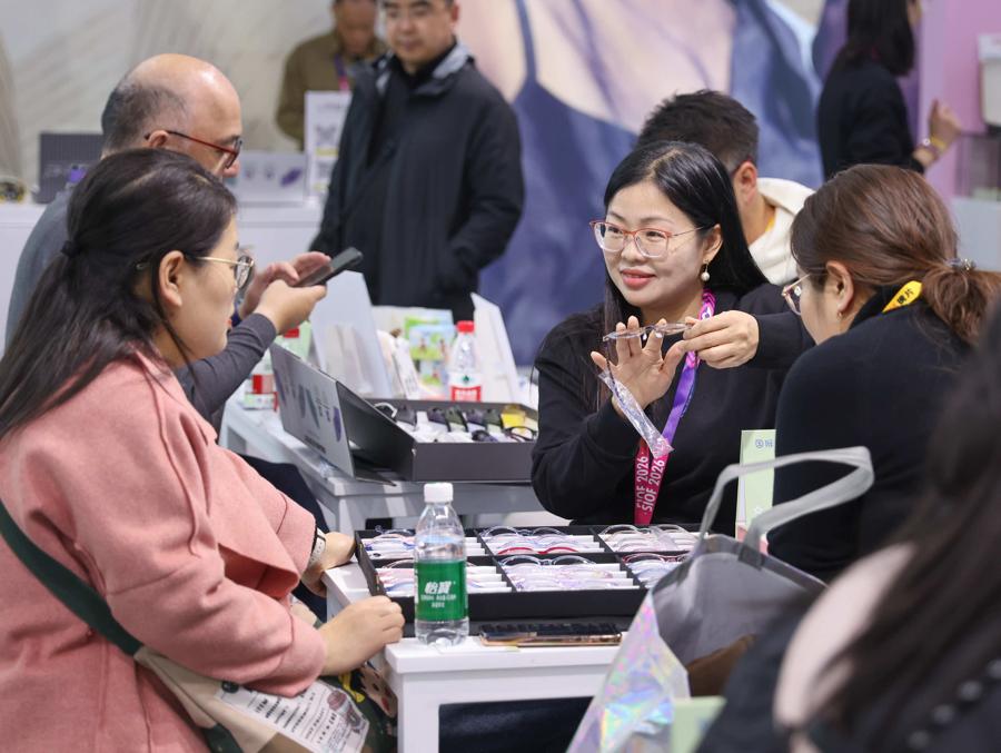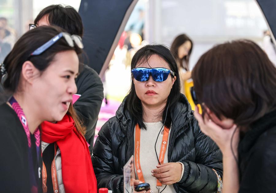 第二十四屆中國(上海)國際眼鏡業展覽會上,女性用戶體驗各類時尚眼鏡