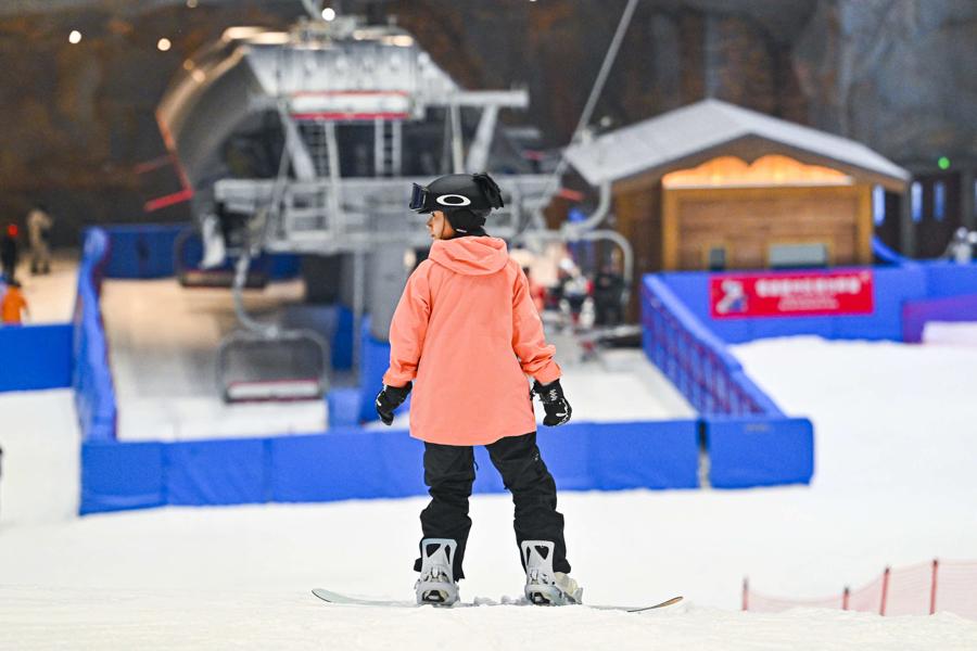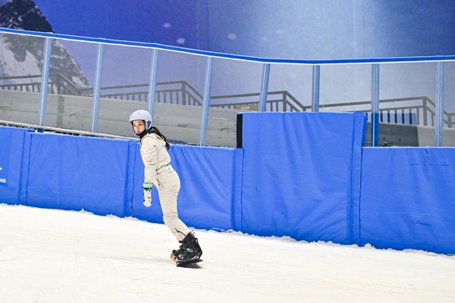 耀雪室內滑雪場內女性體驗滑雪運動,專業裝備與場景消費勾勒體育消費新圖景