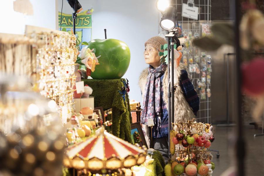 在“女子女子市場”中,一位打扮精緻的年長女性漫步市集