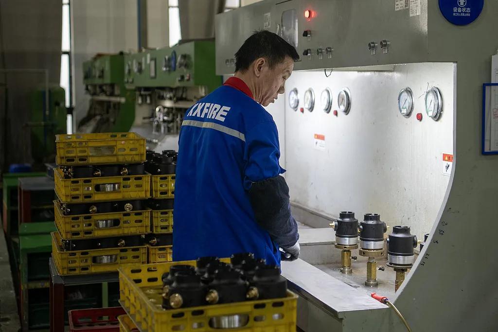 員工在趕製一批出口歐美的消防器材零件