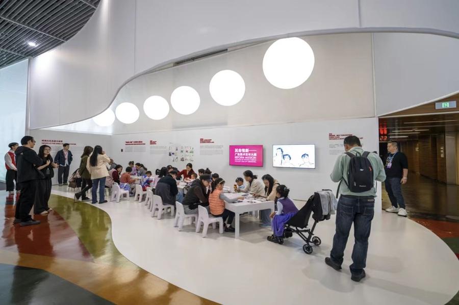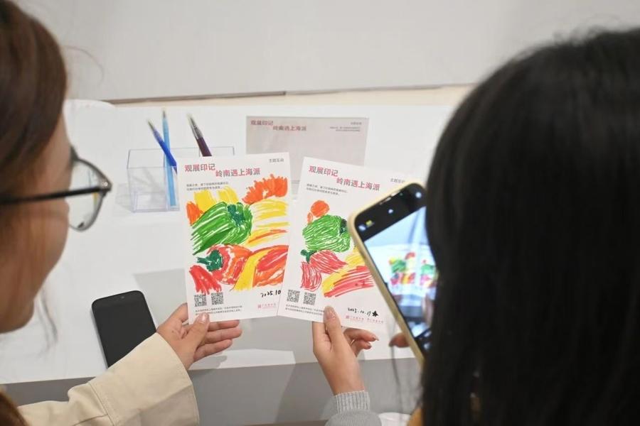 展期之內,逾百場不同類型的公教活動接力舉辦,多維度打開廣東美術百年畫卷。其中,12場“嶺南文化名家大講堂”累計邀請36位來自全國各地的文化名家,圍繞展覽進行主題演講和深度對談,從嶺南美術百年革新的地理密碼到科技如何重塑藝術表達,從雙城記視角下嶺南畫學的地域突破與時代轉型到嶺南文化中的多元共存與融合之道,不是簡單的知識普及,而成爲展覽敘事的重要補充。一系列“嶺南遇上海派”公共教育主題活動邀請觀衆以拓印、拼圖等方式,親身感受藝術創作的過程,從而建立與展品更深層次的情感聯結。創新推出的“Artwalk 海派與嶺南文化之旅”“藝術脫口秀”等項目,更以接地氣的方式建立了上海觀衆與廣東美術的鏈接。參加過一場Artwalk的資深文史愛好者王先生告訴記者:“以前只知道福州路賣文化產品,沒想到那裏還是嶺南畫派革新的起點。這場行走讓歷史‘活’了起來,比單純觀展更有衝擊力。”