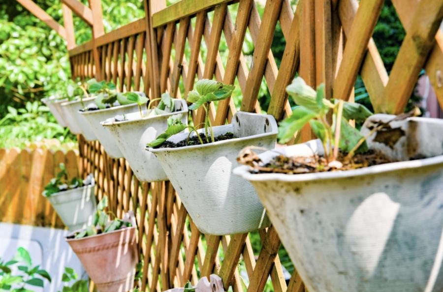 圖爲一平方米菜園,居民通過收集餐前垃圾製作酵素肥料後再用於施肥。/文匯報記者張伊辰攝