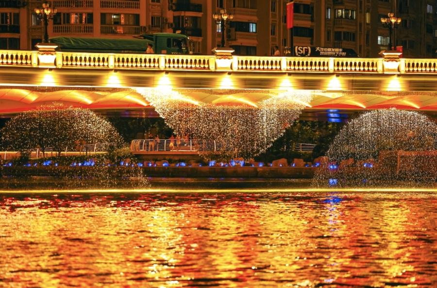 圖爲璀璨的城市燈光點亮夜空,但也可能對周邊居民樓產生影響,需科學評估。/文匯報記者張伊辰攝