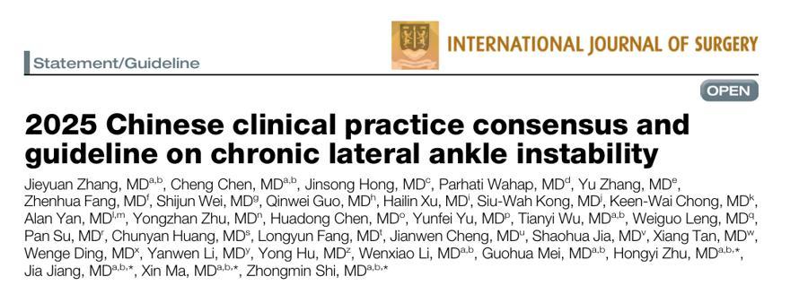 隨着全民健身運動的蓬勃發展和競技體育水平的不斷提升,踝關節扭傷已成爲最常見的運動損傷之一。值得注意的是,不少患者在第一次經歷踝關節扭傷後,會遭遇反覆崴腳困擾,這在醫學上稱爲“慢性踝關節外側不穩定(CLAI)”。近日,上海市第六人民醫院國家骨科中心足踝外科團隊牽頭,在《國際外科雜誌》發表最新臨牀共識與指南,指南強調,建立規範化的CLAI診療體系,制定標準化診療方案,對於改善患者預後、降低致殘率具有重要的臨牀意義和社會價值。