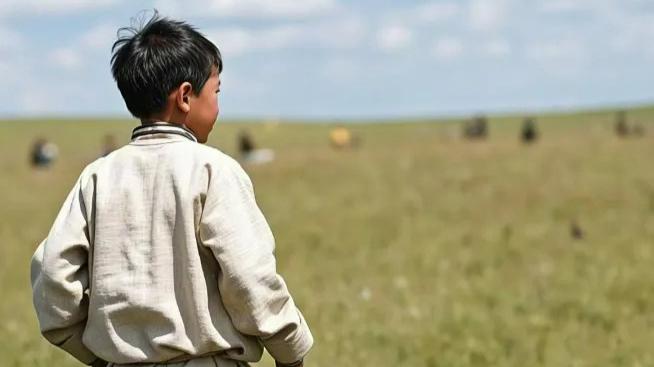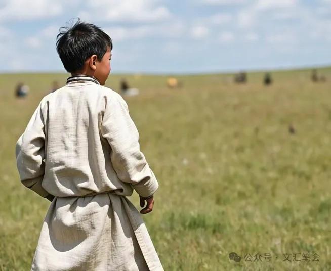 到了夏季,我和幾個夥伴經常爬到村前的畢勒古泰山上玩耍,我總能遠遠地看見布仁夫騎馬牧牛的身影。在我心裏,他完全是個大人了,事實上,他只有十三歲。