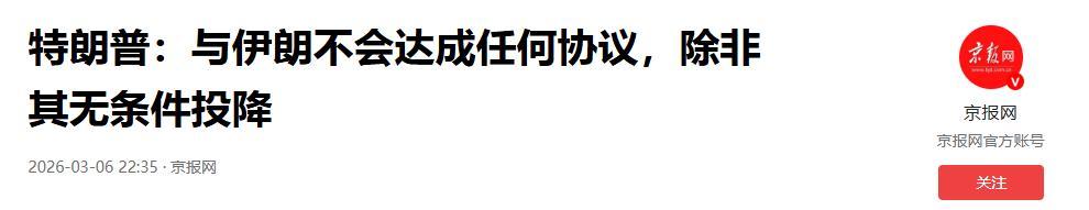 3月6號那天,特朗普在社交平臺上直接放狠話,語氣囂張到不行:“除非伊朗無條件投降,否則美國絕不跟他們談任何協議!”