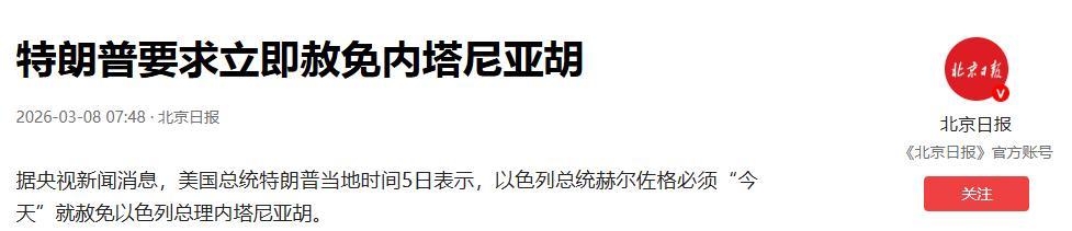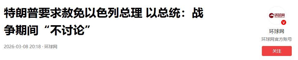 特朗普要求赦免以色列總理 以總統:戰爭期間“不討論”.2026-03-08 20:18·環球網.