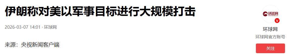 伊朗稱對美以軍事目標進行大規模打擊.2026-03-07 14:01·環球網.
