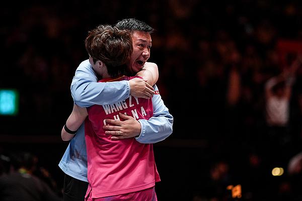 王祉怡賽後與羅毅剛教練擁抱