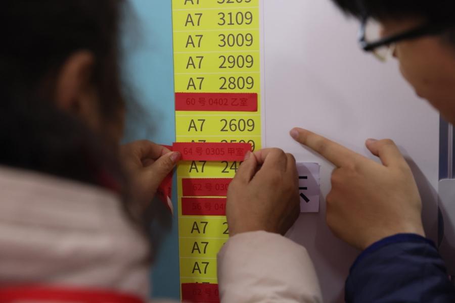 選房流程環環相扣:每證居民限一名選房人入場,完成身份驗證後按簽約順序號依次上臺摸取籤球,確定本組選房順序後,再按順序號上臺選房,粘貼選房憑證、簽署選房結果確認書和選房統計表並補全房屋成套改造協議信息,流程規範高效。
