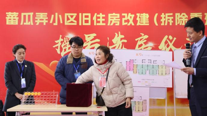 今天上午,上海市靜安區蕃瓜弄小區舊住房改建(拆除重建)項目選房活動在天目中路749弄55號啓動,共計47種房型,安排126場選房活動。
