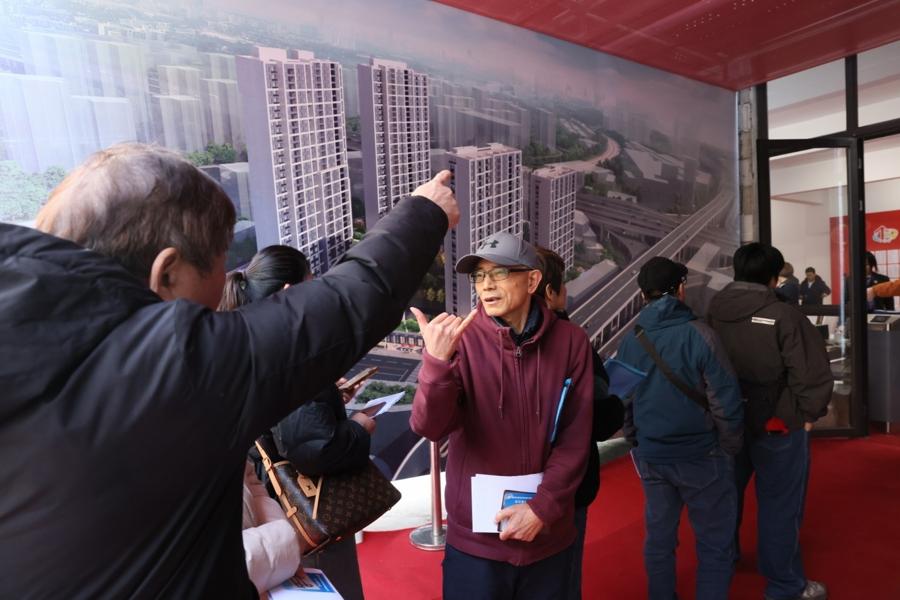考慮到場地承載量限制,現場創新設置陪同人員分會場,通過實時直播畫面同步選房進程,方便居民場內外溝通商議,解決選房後顧之憂。