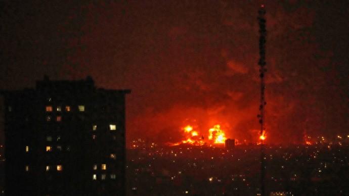 3月7日,伊朗首都德黑蘭的一處儲油設施冒出火光。
