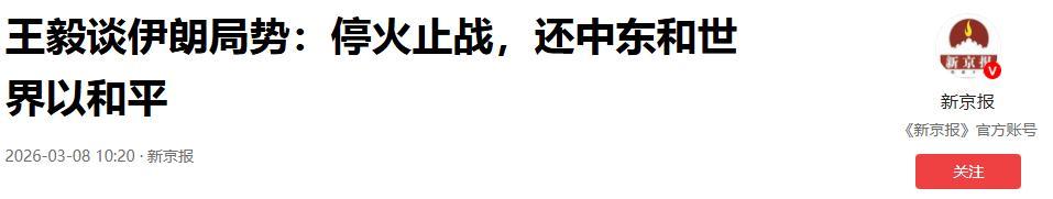 王毅談伊朗局勢:停火止戰,還中東和世界以和平.2026-03-08 10:20·新京報.