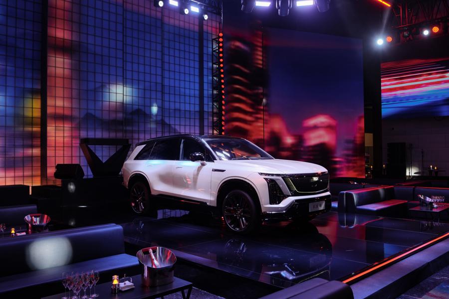 活動的另一項重要環節,是凱迪拉克全新車型凱威德的亮相。周冠宇與品牌中國區高管共同爲新車揭幕,這款全尺寸純電SUV也在現場完成首發。隨着幕布滑落,這款旗艦級車型以優雅且充滿力量感的姿態呈現在衆人面前。