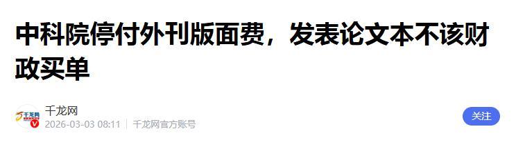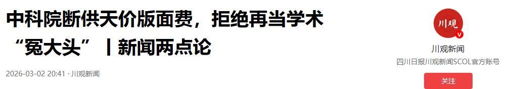 中科院斷供天價版面費,拒絕再當學術“冤大頭”丨新聞兩點論.2026-03-02 20:41·川觀新聞.
