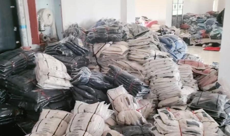 經深入偵查,在充分掌握犯罪證據後,專案組確認當地某服裝加工作坊正是由王某及其家庭成員共同製售假冒品牌羽絨服的窩點,並於今年1月15日,在當地警方配合下,成功將王某、王某斌和程某3名犯罪嫌疑人抓獲,當場查獲大量假冒品牌標識的羽絨服4000餘件、馬甲3000餘件,以及待使用的假冒胸標、水洗標、領標、吊牌等配件300餘件,案值金額共計100萬餘元。