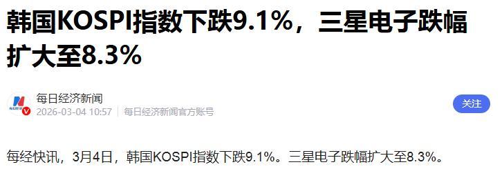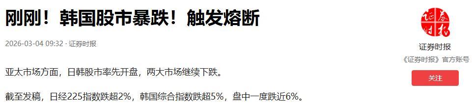 剛剛!韓國股市暴跌!觸發熔斷.2026-03-04 09:32·證券時報.