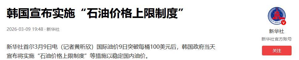 沒辦法,韓國政府只能罕見地出手,宣佈啓動石油價格上限措施——這可是1997年韓國實行油價市場化以來,第一次直接干預油價。