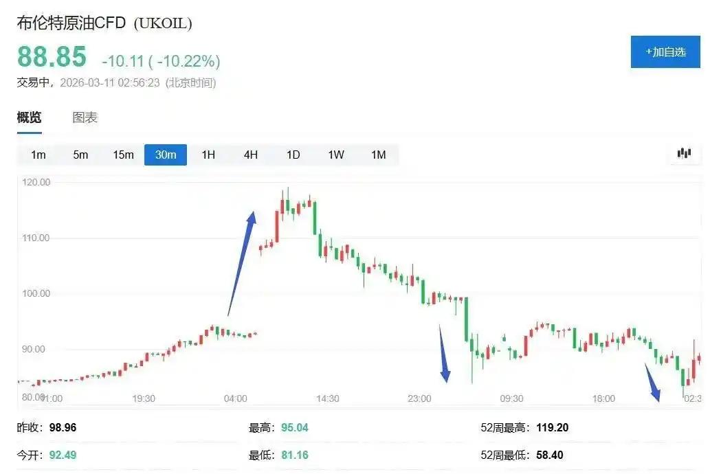 他們之所以突然鬆口,核心就一個:怕油價漲得太狠,自己扛不住。之前油價一度衝到了119美元/桶。華爾街的專家直接警告:
