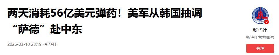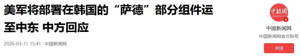 美軍將部署在韓國的“薩德”部分組件運至中東 中方回應.2026-03-11 15:41·中國新聞網.