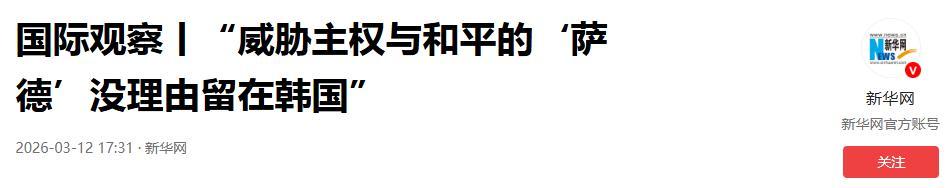 國際觀察丨“威脅主權與和平的‘薩德’沒理由留在韓國”.2026-03-12 17:31·新華網.