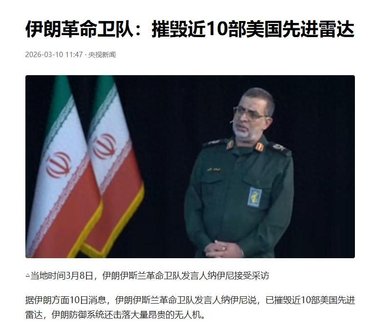 算上之前被摧毀的,從開戰到現在,美軍已經摺損了10套薩德雷達。