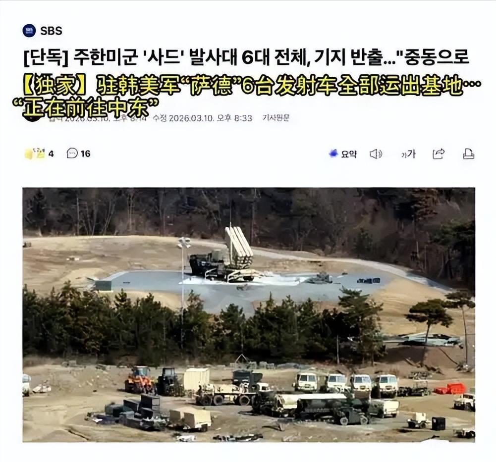 那就是偷偷把部署在韓國星州基地的6部薩德反導發射車,連夜打包運往了中東戰場。