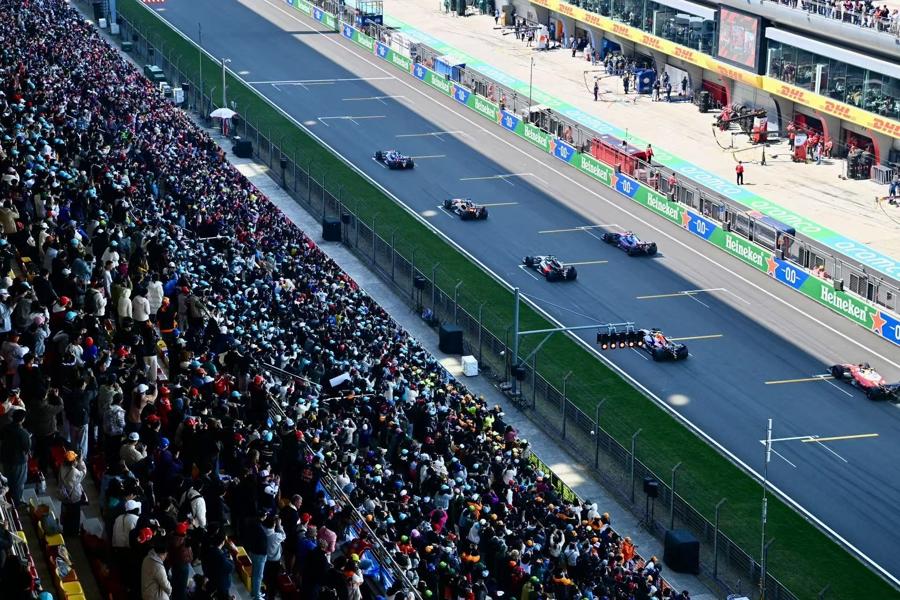 下午,衝刺賽排位賽準時開跑,F1車手悉數登場,引擎轟鳴響徹賽場,飛馳的賽車掀起熱浪,每一次極限過彎、極速衝刺都讓現場觀衆熱血沸騰。看臺之上,車迷揮舞旗幟、吶喊助威,觀賽氛圍直接拉滿。