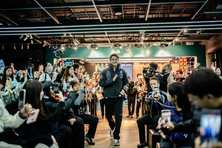 同日下午,阿迪達斯上海南京東路品牌中心迎來F1車手拉塞爾“馭見未來”車迷見面會。(主辦方供圖)