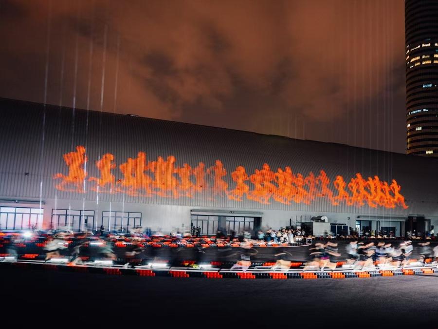 在由運動員領跑、百名精英跑者共同參與的3公里主題衝刺中,跑者的實時心率與步頻數據聯動現場燈光與音樂。當集體心率達到預設閾值時,現場觸發“競速美學音樂舞臺”,跑步由此昇華爲一場集體的“速度”藝術共創。