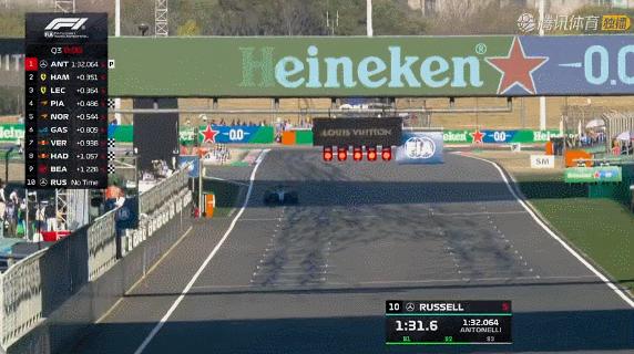 Q3階段結束,安東內利成爲F1歷史上最年輕杆位得主,拉塞爾和漢密爾頓分列二、三名