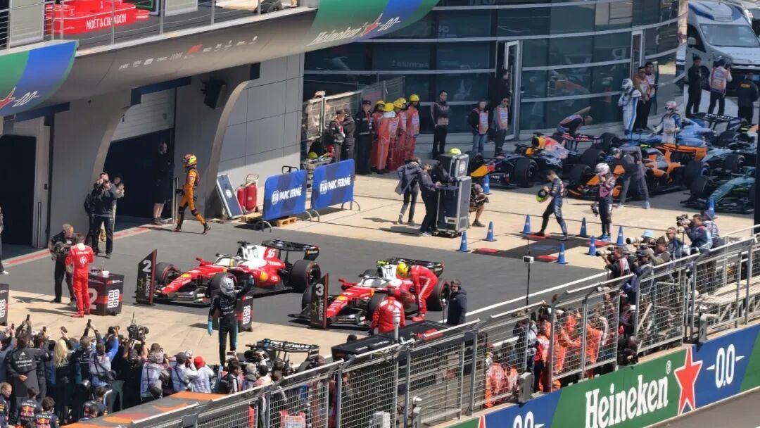 在2026F1中國大獎賽衝刺賽中,杆位發車的梅賽德斯車手拉塞爾以第一名衝線,法拉利車隊的勒克萊爾和漢密爾頓分列二三位。