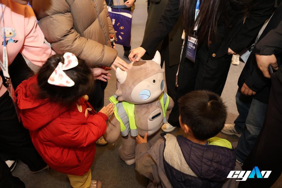 Amoo在現場交互中傳神地表達着豐富情緒,引得觀衆紛紛駐足。當被要求表演唱歌時,它會“顧左右而言他”,用懵懂的大眼神報以無辜的注視,像極了“在親朋面前被迫營業的小朋友”;當被調侃“笨笨”時,它立即雙眼橫眯、雙手叉腰,伴着“吶—吶—”的陣陣抗議聲,將不滿演繹得活靈活現。