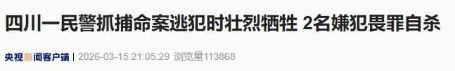 四川一民警抓捕命案逃犯時壯烈犧牲,另有一名民警受傷,2名嫌犯畏罪自殺,涉案槍支和彈藥已全部繳獲